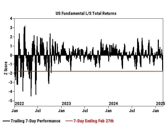 高盛指出,更值得属主意是,好意思国多空基金司理刚刚阅历了自2022年10月以来最糟糕的7天(下落2.84%),岁首于今仅上升0.98%。上周好意思国市集的模式空头卖出量(高度鸠合在宏不雅产物上)是曩昔5年来第二大规模(险些与2022年9月持平),位于第100百分位。